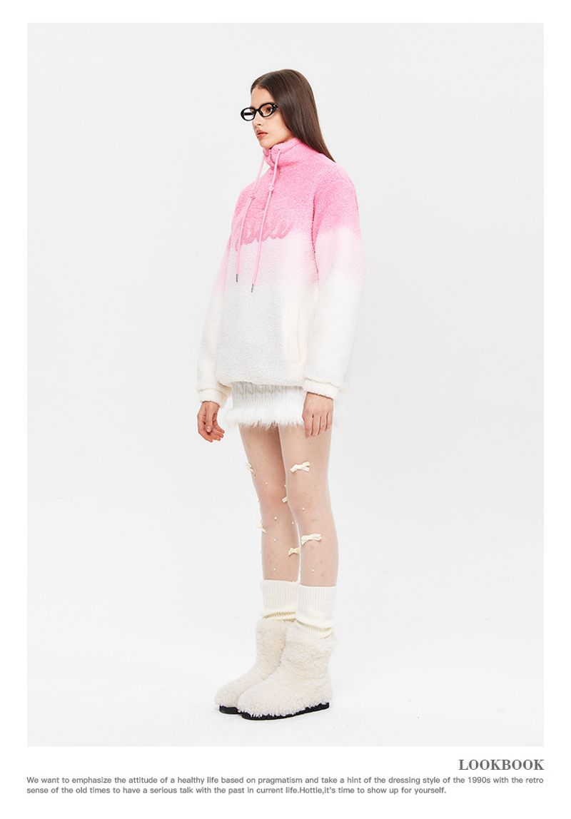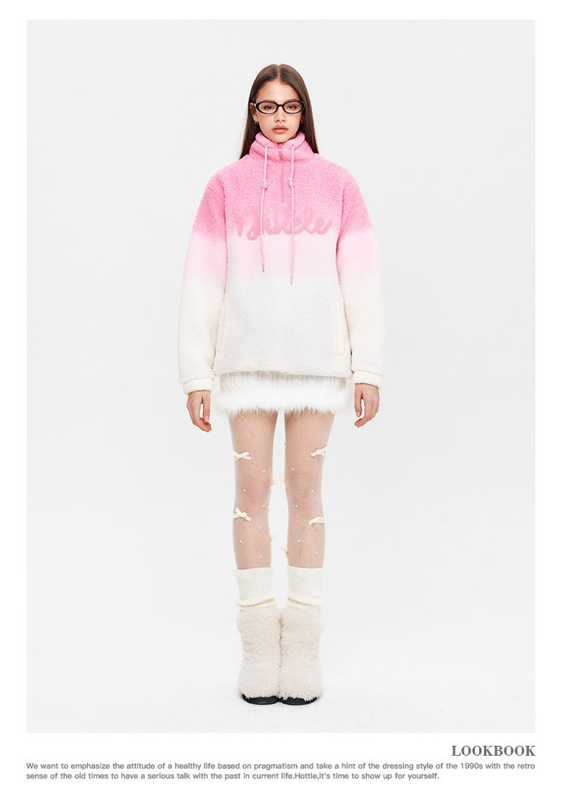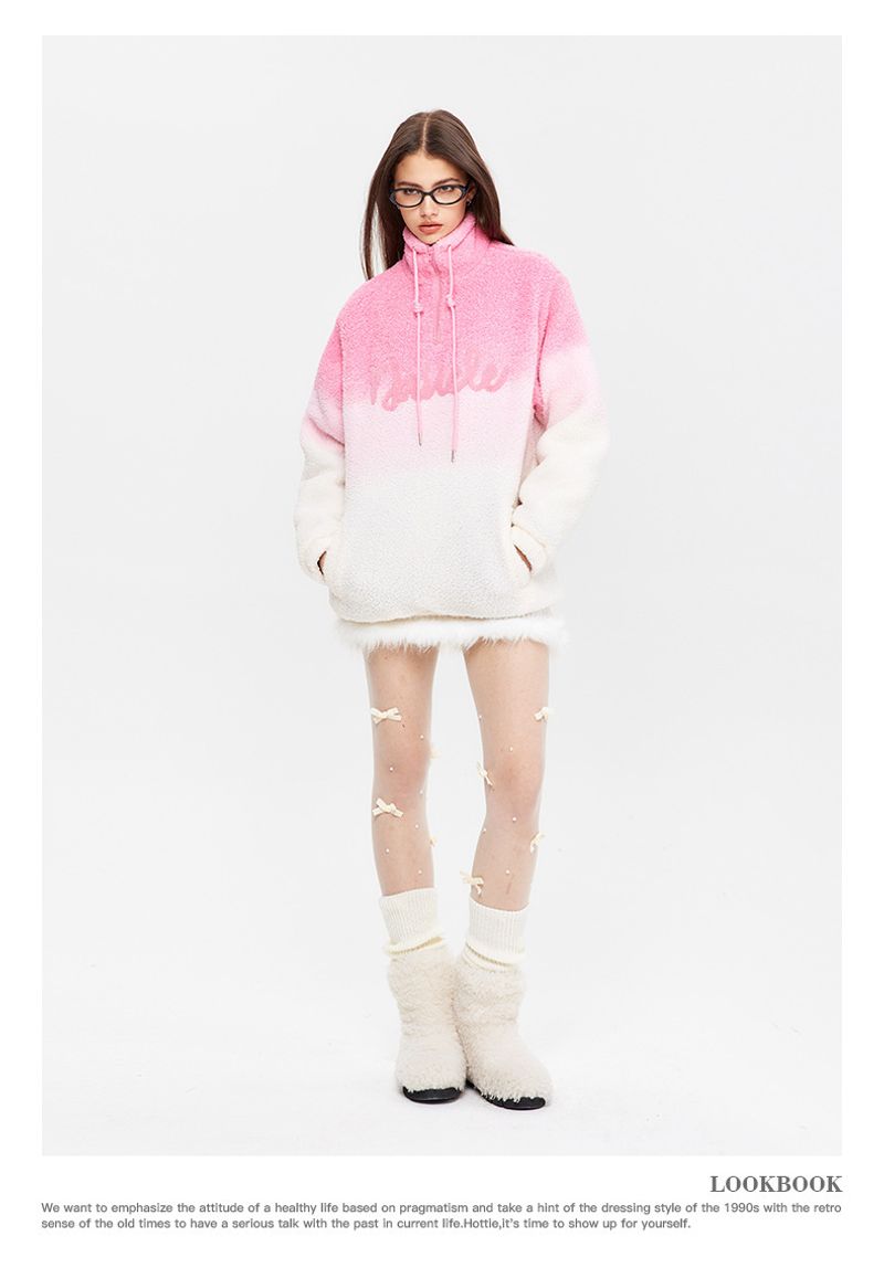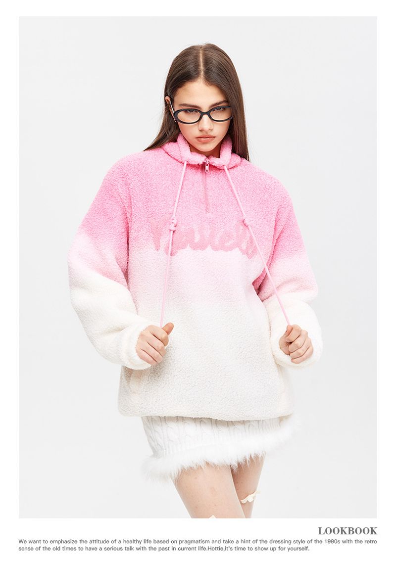 ملابس نسائية سويتر شتوي بلون تدرج اللون مصنوع من صوف الحمل مناسب للرجال والنساء، سميك وموضة عصرية كاجوال يناسب كل شيء بنمط كسول.